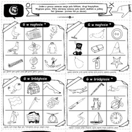 Logopedyczne, obrazkowe kółko i krzyżyk z głoską G