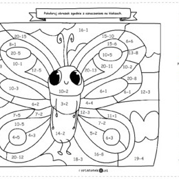 Zakodowana kolorowanka z motylem. Dodawanie i odejmowanie do 20