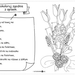 Pokoloruj wiosenne kwiaty zgodnie z opisem. Trening czytania ze zrozumieniem