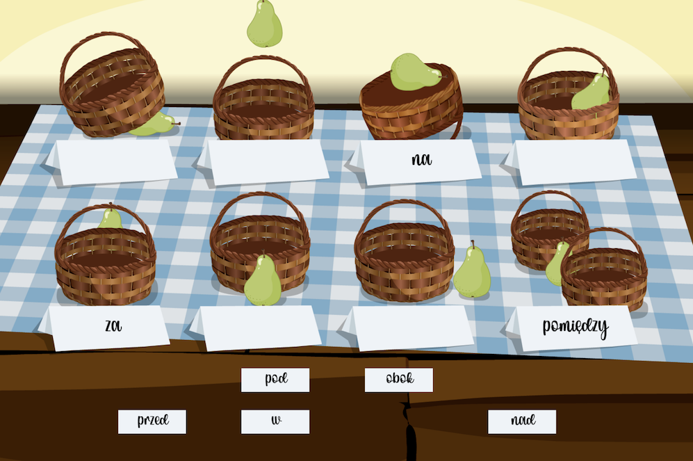 Umieść podpisy pod właściwymi ilustracjami. Kliknij tabliczkę z podpisem, odsłuchaj lektora i wskaż na ekranie miejsce, w którym powinna się znaleźć. Prawidłowo ułożone tabliczki pozostają na wskazanym miejscu.