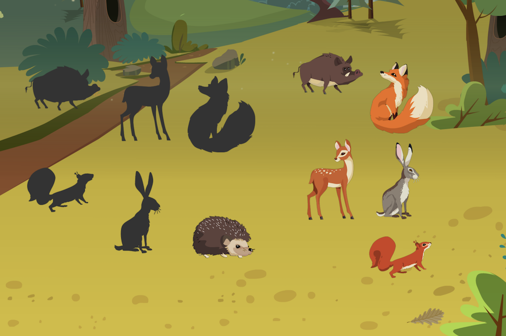 Ułóż zwierzęta na odpowiednich cieniach. Kliknij wybrane zwierzę, a następnie jego cień. Prawidłowo umieszczone elementy zostają na swoim miejscu.