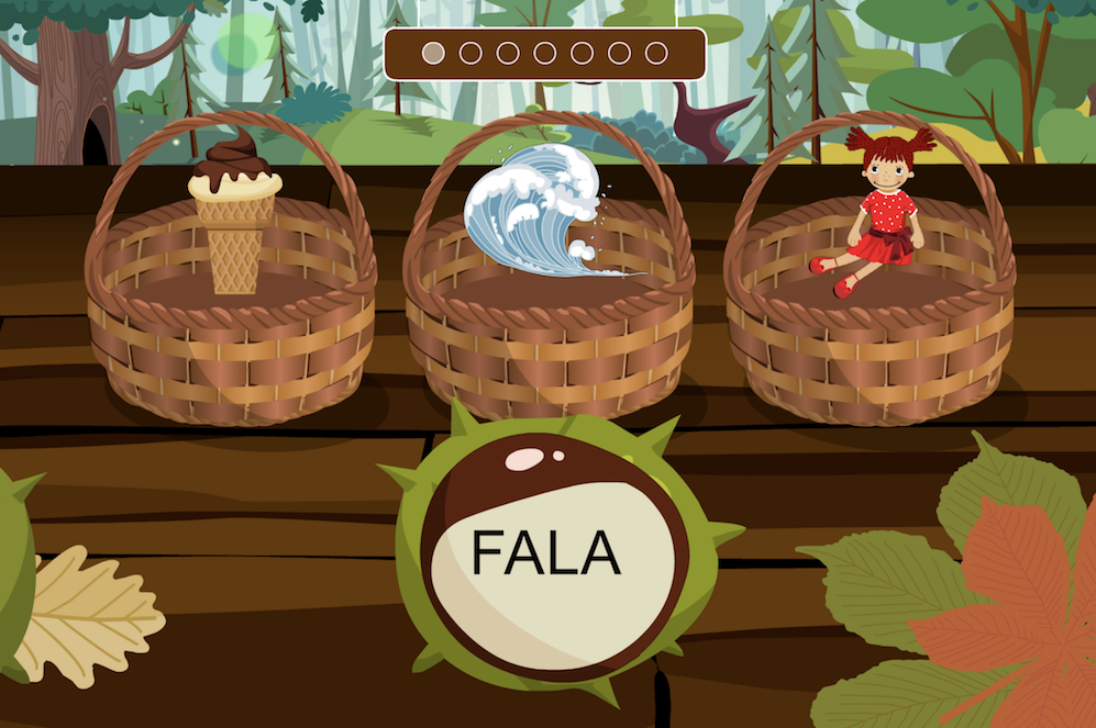 Przeczytaj wyraz, który znajduje się na kasztanie i wskaż koszyczek z ilustracją, która go obrazuje.