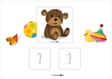 Materiał zawiera 7 stron. Na pierwszych dwóch znajdują się plansze (pierwsza na trzy elementy, druga na dwa), na których kładziemy wybrany duży obrazek, a dzieci mają za zadnie dopasować z mniejszych elementów części składowe większego obrazka np. niebieski miś w kropki. Na kolejnej karcie znajduje się 10 kartoników do wycięcia z kształtami i kolorami składowymi. Na kolejnych kartach znajduje się 24 kartoników do wycięcia z gotowymi kombinacjami wzorów i kolorów z wcześniejszej karty.