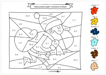 Materiał zawiera kartę, na której uczeń ma za zadanie pokolorować ilustracje według kodu. Każdej liczbie został przyporządkowany inny kolor.