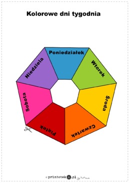 Dni tygodnia oznaczone na trapezach składających się na siedmiokąt foremny.