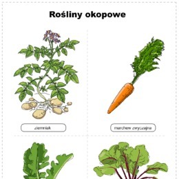 Ilustracje przedstawiające 4 rośliny okopowe.