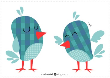 Ilustracja dwóch niebieskich ptaszków.