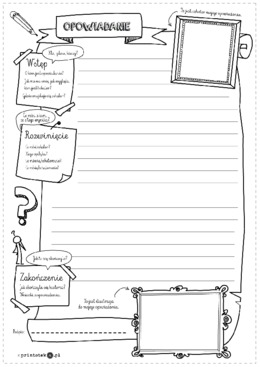 Materiał zawiera kartę, na której dziecko ma za zadanie napisać opowiadanie. Dzięki dodatkowym opisom i podpowiedziom znajdującym się na karcie dzieciom łatwiej jest rozplanować treść. Materiał powstał przy współpracy z Beatą Piotrowicz. Aktualizacja: 07.10.2019
