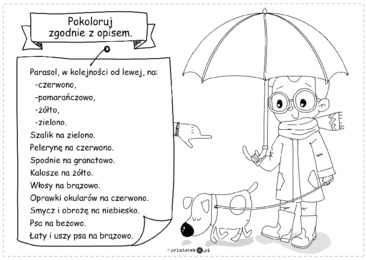 Pokoloruj ubiór na deszcz zgodnie z opisem. Trening czytania ze zrozumieniem