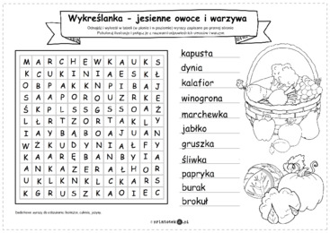 Wykreślanka z jesiennymi owocami i warzywami