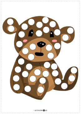 Materiał zawiera kartę z ilustracją, którą można (w miejscu kropek) wypełnić stempelkami, plasteliną lub odciskami palców.