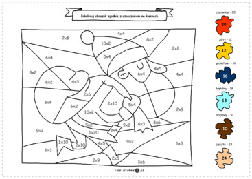 Materiał zawiera kartę, na której uczeń ma za zadanie pokolorować ilustracje według kodu. Każdej liczbie został przyporządkowany inny kolor.