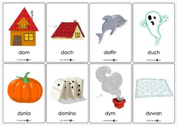 Materiał zawiera 3 plansze z 24 kartami. Wszystkie obrazki przedstawione na kartach zawierają w nazwie głoskę [d]. Na pierwszej planszy głoska [d] występuje w nagłosie bez głoski [r], [p] i głosek dentalizowanych, na kolejnej w śródgłosie k, na ostatniej karcie głoska [d] występuje w nagłosie i śródgłosie w towarzystwie głoski [p]. Uwaga, nazwy niektórych ilustracji zawierają inne trudne głoski, można z nich zrezygnować lub używać całej puli kart w zależności od wymagań terapii. Aktualizacja: 28.01.2026