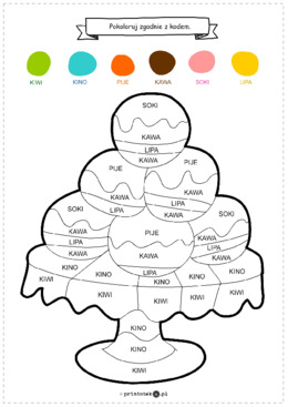 Pączki – zakodowana kolorowanka z prostymi wyrazami dwusylabowymi