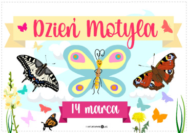 Karta informująca o Dniu Motyla obchodzonym 14 marca.