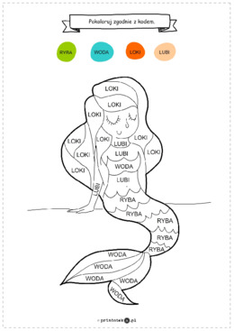 Syrenka – zakodowana kolorowanka z prostymi wyrazami dwusylabowymi