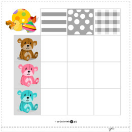 Układanka logiczna. Wzory i kolory pluszowych misiów